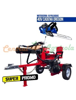Super Promo Pack Astilladora Partidora Leña 22 Toneladas + Motosierra Litio Oregon 16 Pulgadas