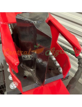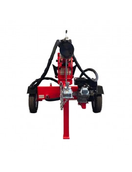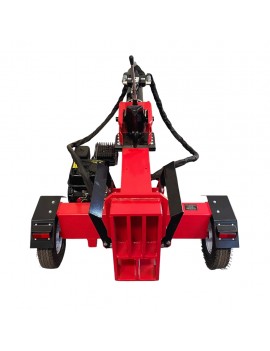 Este partidor de troncos de 22 toneladas posee ruedas y tiro de arrastre lo que lo hace portátil.