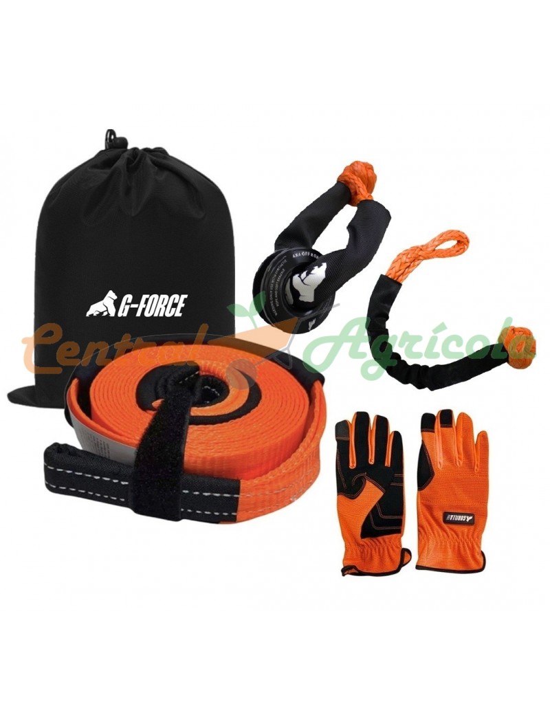Kit Cinta de Tiro Snatch Strap Recuperación Rescate Eslinga 12 Toneladas 9 metros polea aluminio, grilletes y guantes G-FORCE