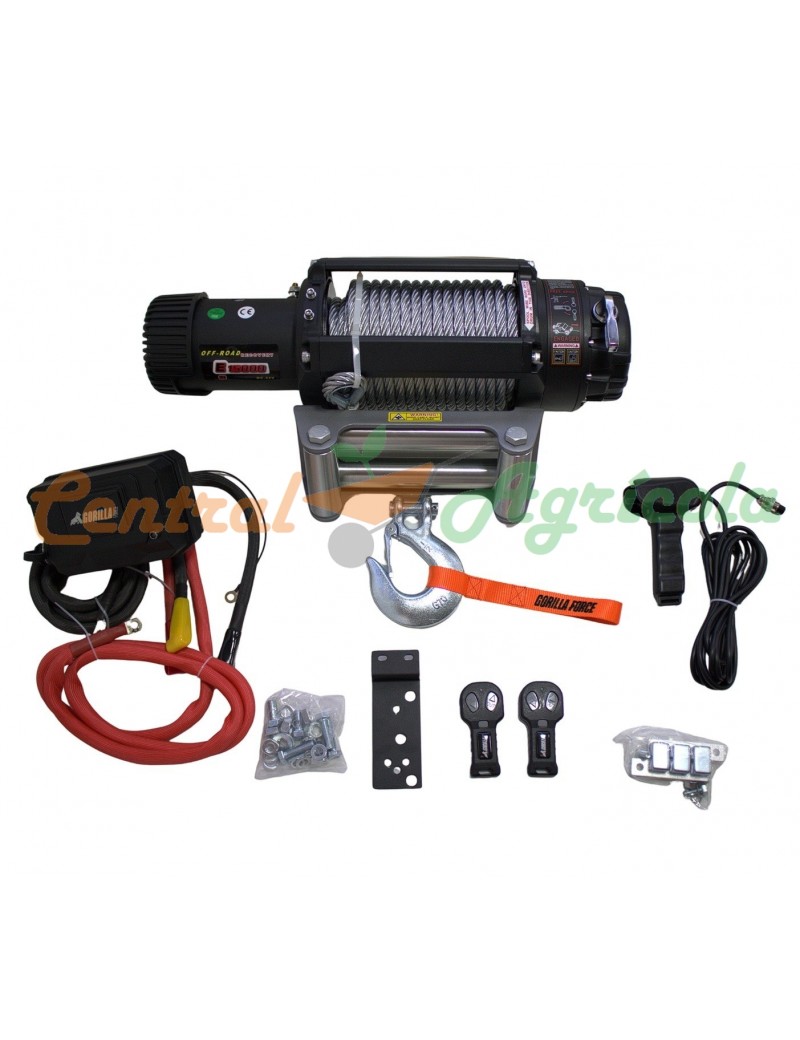 Winche Gorilla Force 15.000 libras 24v control remoto manual e inalámbrico piola acero