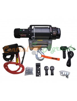 Winche de 15.000 libras en 24v con control remoto inalámbrico y manual.