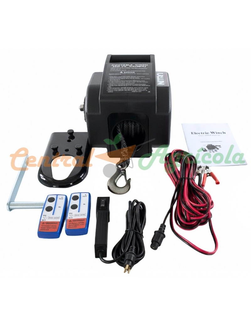 Winche Eléctrico Portátil 3.000 libras 12v Piola Sintética Desmontable y Control Remoto
