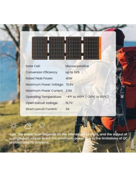 FlexSolar Panel Solar Cargador Plegable de 40 W USB-A USB-C Portátil de Emergencia Monocristalino Impermeable