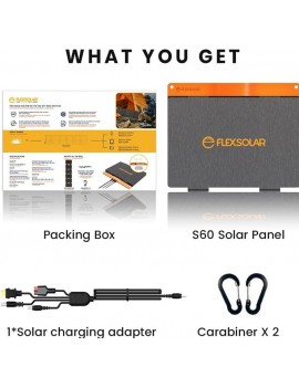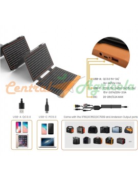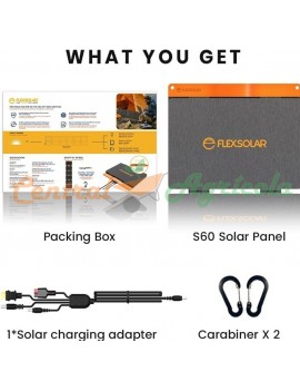 FlexSolar Panel Solar Cargador Plegable de 60 W USB-A USB-C CC y DC 20-28V Portátil de Emergencia Monocristalino Impermeable