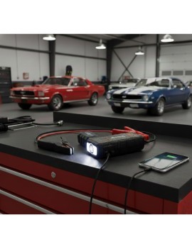1. Potencia Compacta y Versátil Este arrancador de litio ultra portátil y liviano tiene una potencia nominal de 1250 amperios.