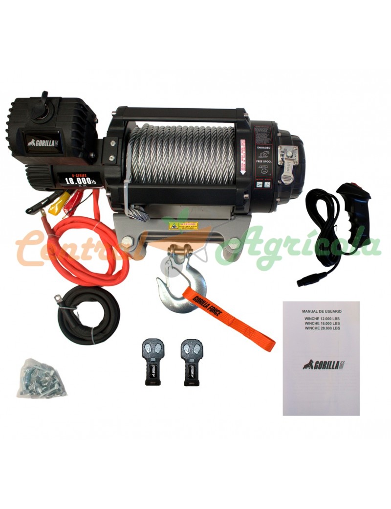 Gorilla Force 18000 , Winche de 18.000 libras en 24v con control remoto inalámbrico y manual.