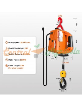 TOYO-INTL JAPAN Tecle cabrestante eléctrico portátil 220V 50HZ AC 500 kilos o 1100 libras.