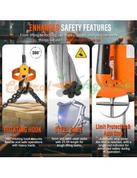 Le brindará la potencia para levantar objetos a cualquier lugar que lo necesite, (requiere suministro eléctrico de 220V AC) incluido el garaje, el taller o la granja.